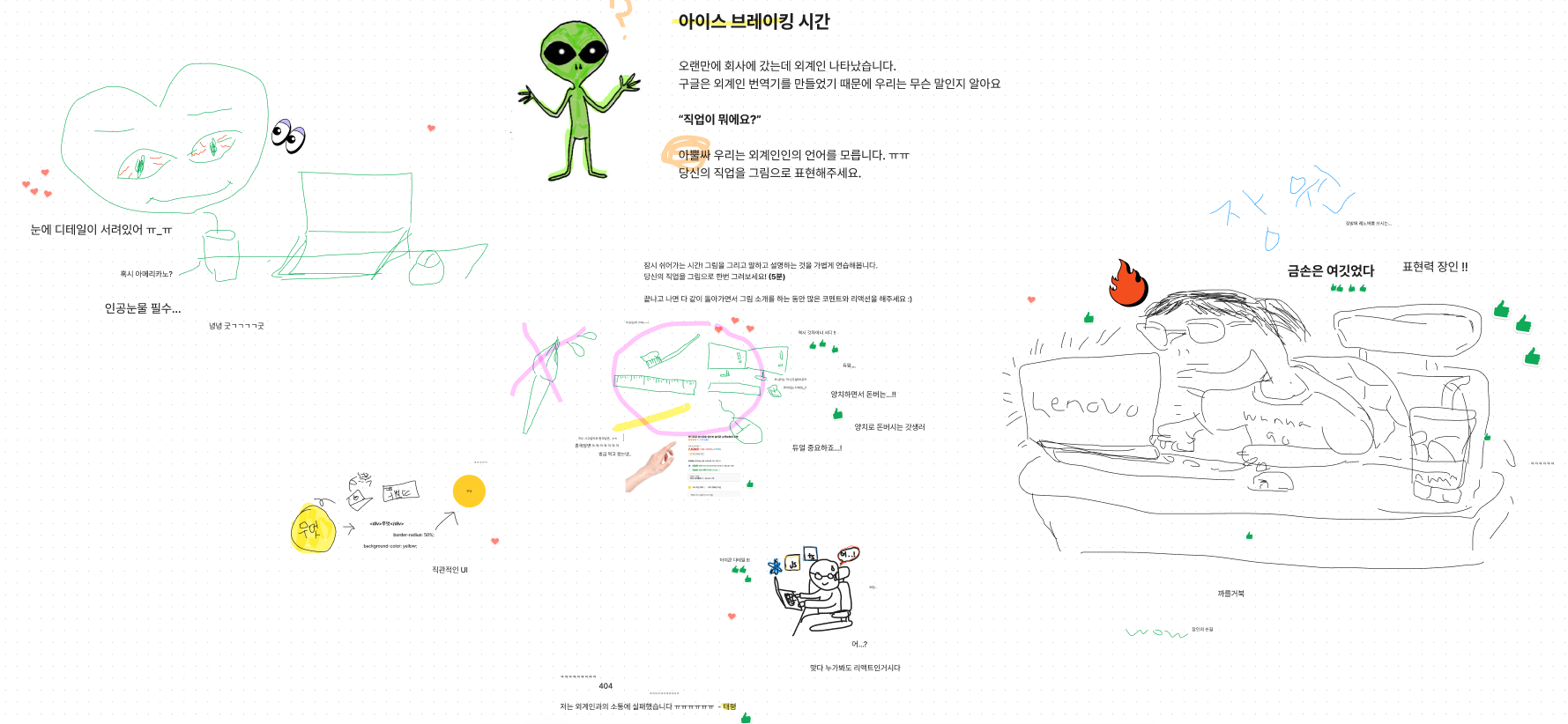 아이스 브레이킹을 했는데 진짜 금손은 따로 있었다 ㅋㅋㅋㅋㅋ 이때까지만 해도 아무도 몰랐다. 앞으로가 얼마나 빡세고 힘들지...